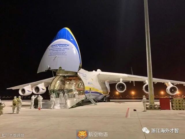 此前,世界多个国家的各种运输机也纷纷前来我国执行抗疫物资的运输任务,它们有美式C-17战略运输机、欧式A-400M大型运输机、A330 MRTT加油机/运输机、安-124巨型运输机、伊尔-76运输机等等;在这次安-225“梦幻”运输机来华之前,来华最大机型是安-124巨型运输机。图为安-225“梦幻”运输机降落天津滨海国际机场,升起机首露出货舱准备装载抗疫物资。(来自:寰球前沿观察)