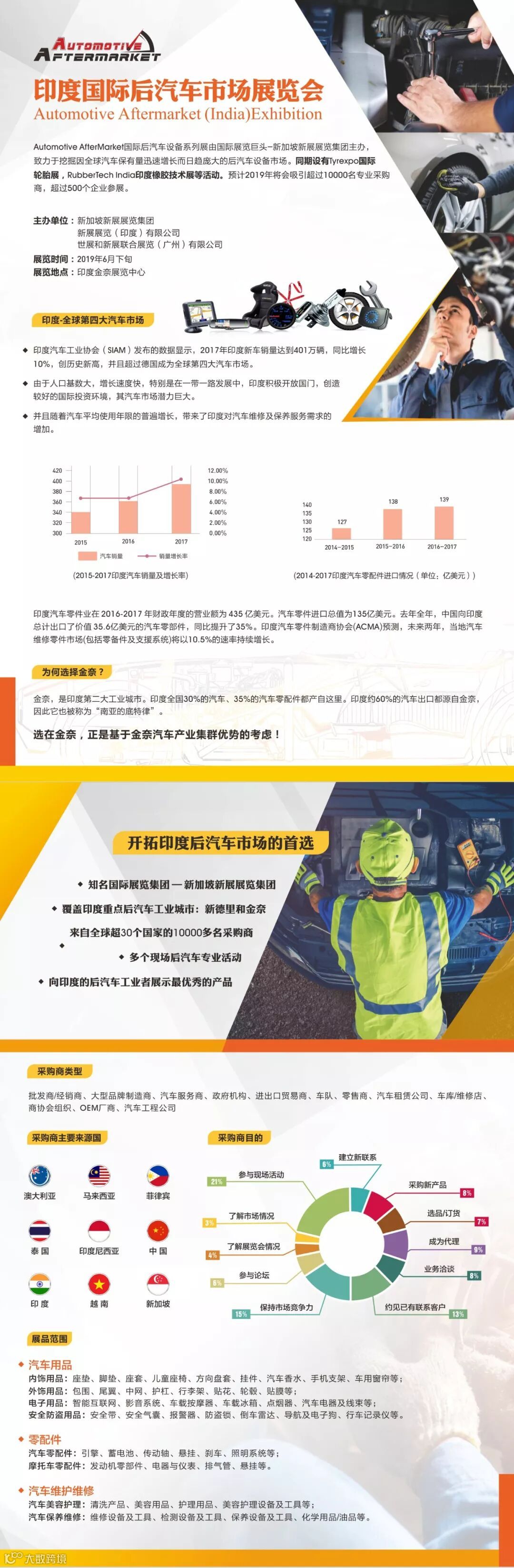 第三届GarageXpo印度国际汽车配件展及第六届Tyrexpo印度国际轮胎展昨日于印度新德里Pragati Maidan展馆隆重开幕。新加坡新展展览公司展览总经理Adrian Sun先生、印度汽车轮胎制造商协会总干事Rajiv Budhraja先生等政商界人士参与开幕。新展展览(印度)公司总经理Baldeep Singh在开幕式上和大家分析了未来印度汽车市场的发展趋势,并且欢迎了全球业内人士齐聚在这么一个印度领先的轮胎、汽车修理、汽车配件发展交流平台上,共同探讨全球汽车发展动向及未来。