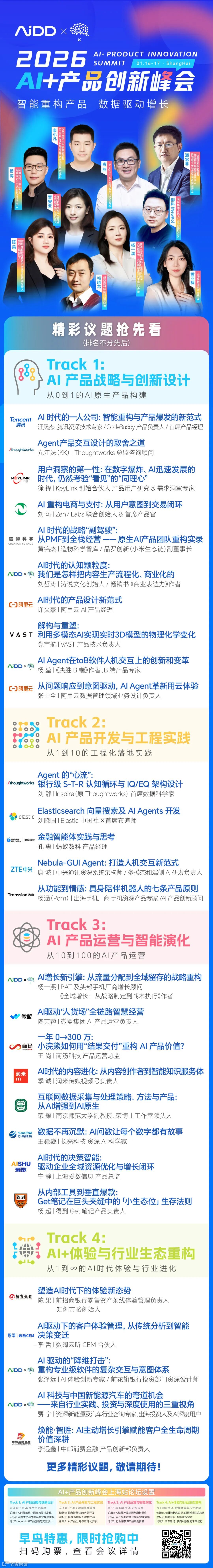 AI+产品创新峰会以“AI为引擎、产品为载体”为核心理念,聚焦如何打通从技术创新到商业落地的全链路。 在这里,全球顶尖的产品负责人、AI科学家、创业者与企业决策者将齐聚一堂,共同拆解从大模型能力到行业智能体、从技术原型到爆款产品的完整路径,探索“AI+产品”的融合范式,构建从战略思考、技术实现到产品创新、商业成功的完整闭环。