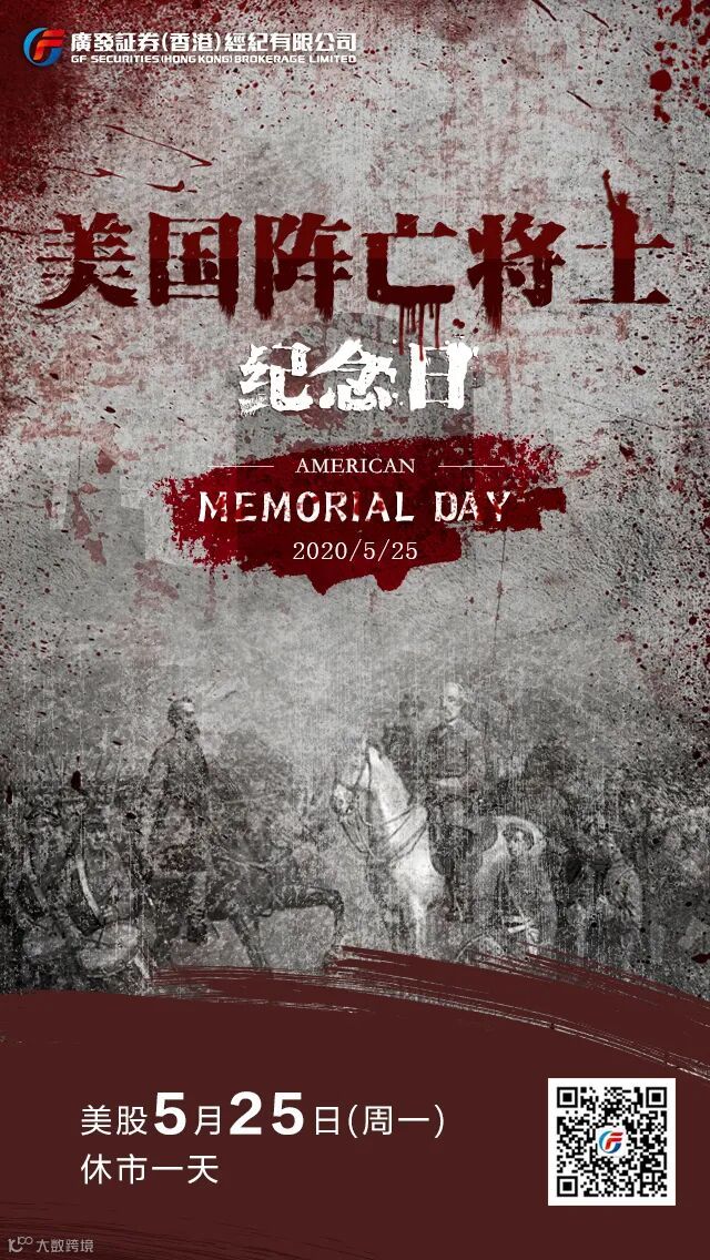 5月25日(周一)是美国阵亡将士纪念日,美股休市一天,5月26日(周二)恢复正常交易。