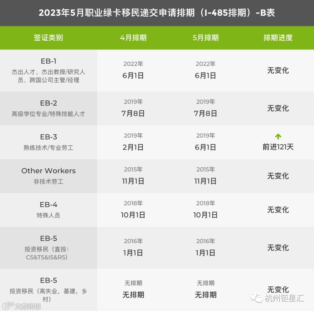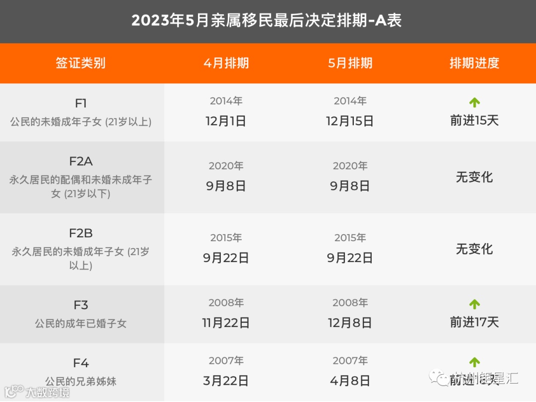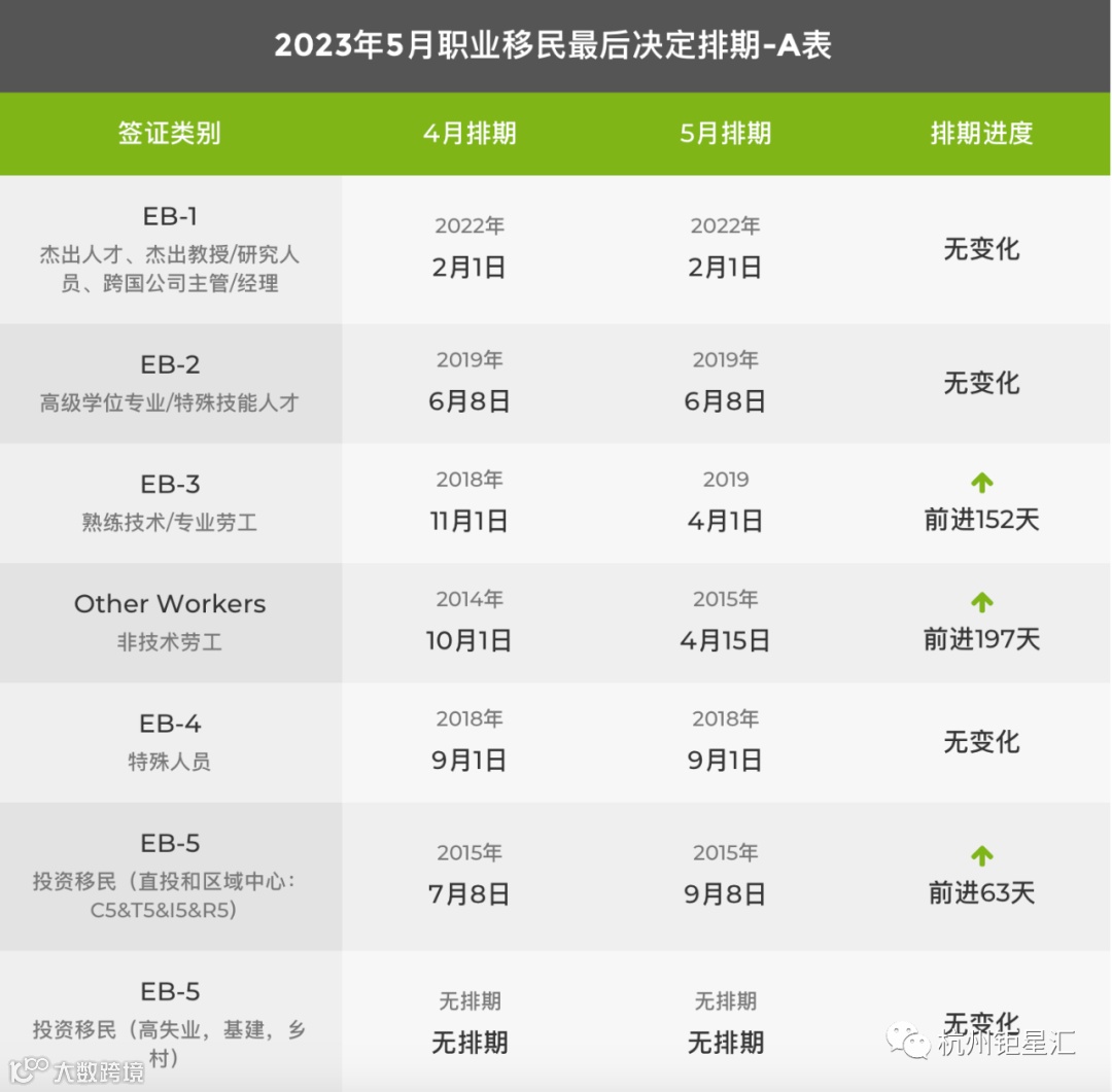 国务院公布的2023年5月绿卡移民排期公布,职业移民,亲属移民和投资移民均有前进。以下是几个 Recap: