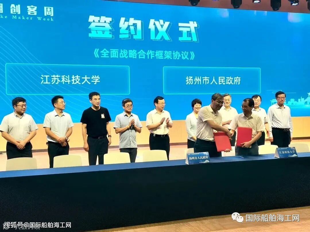 开幕仪式上,王加友副校长与扬州市副市长赵庆红签订江苏科技大学与扬州市政府全面战略合作框架协议。