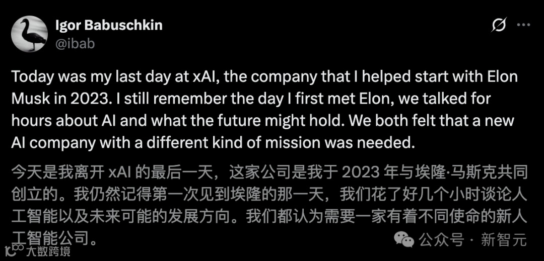 如今,AI大牛Igor Babuschkin的离职,正式为xAI的旅程画上了句号。