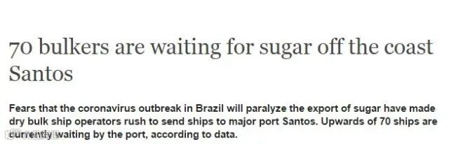 巴西最大糖业集团负责人表示:“许多国家担心疫情会使供应链受到影响,因此决定保证供应,形成战略储备。”