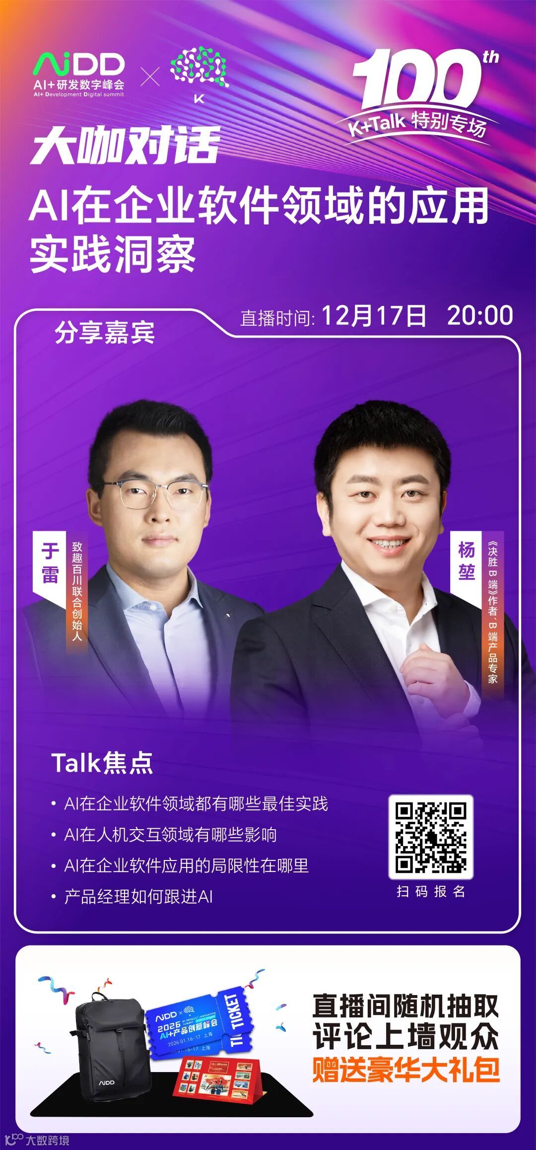 No.100 #K+Talk 听杨堃老师和百川于雷总聊聊AI在2B软件人机交互上的那些事儿~