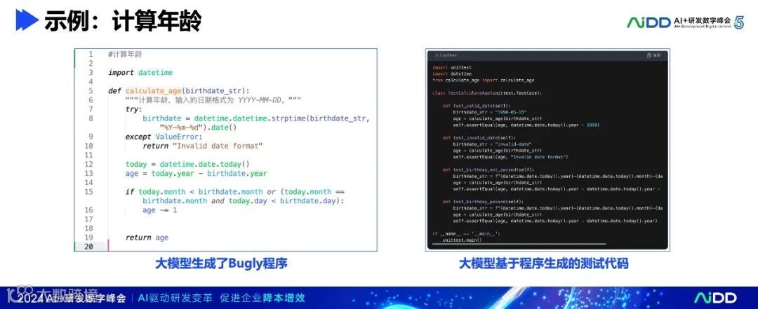 由代码大模型或通义大模型(不同于测试生成的大模型)生成程序/产品代码:在测试的指导下,生成高质量的代码。 -