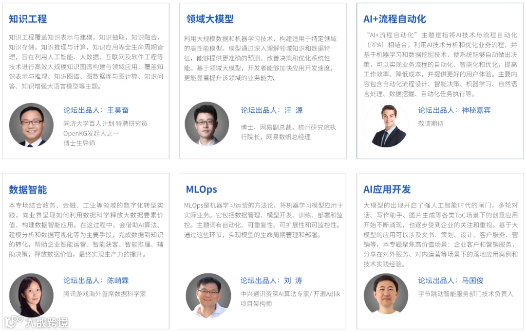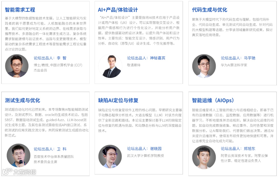 AiDD峰会深圳站设置了“知识工程、领域大模型、Al+流程自动化、数据智能、 MLOps、AI应用开发、智能需求工程、Al+产品/体验设计、代码生成与优化、测试生成与优化、缺陷 AI 定位与修复、智能运维(AIOps)、AI安全、蚂蚁专场、大厂专场”等15个论坛内容。融合主题演讲、互动研讨、案例分享、实战演练等多种形式,汇聚1000+技术达人共同打造一场高品质的技术峰会。