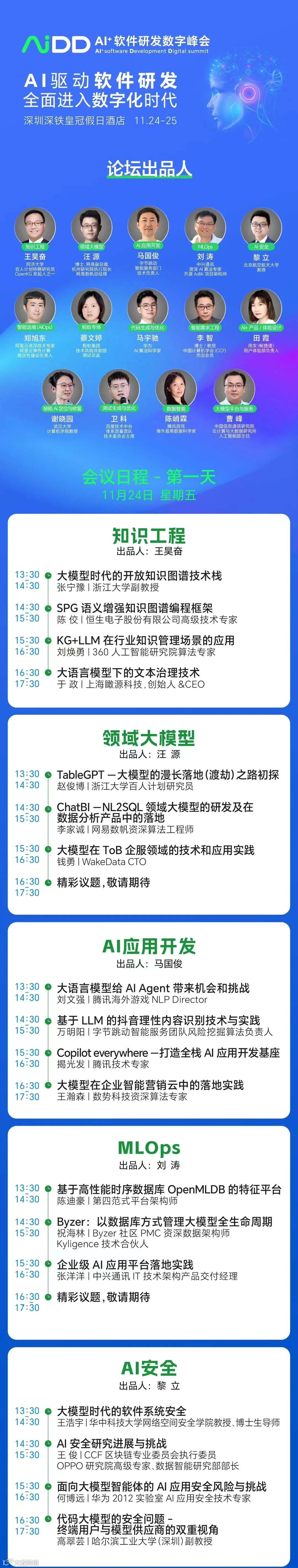 这里有一个助你赶在时代前列的机会。11月24-25日,一场聚焦于AI大语言模型的年度盛会,“AI+软件研发行业数字峰会(AiDD峰会)”即将于深圳举办。助你在人工智能的浪潮中乘风破浪。