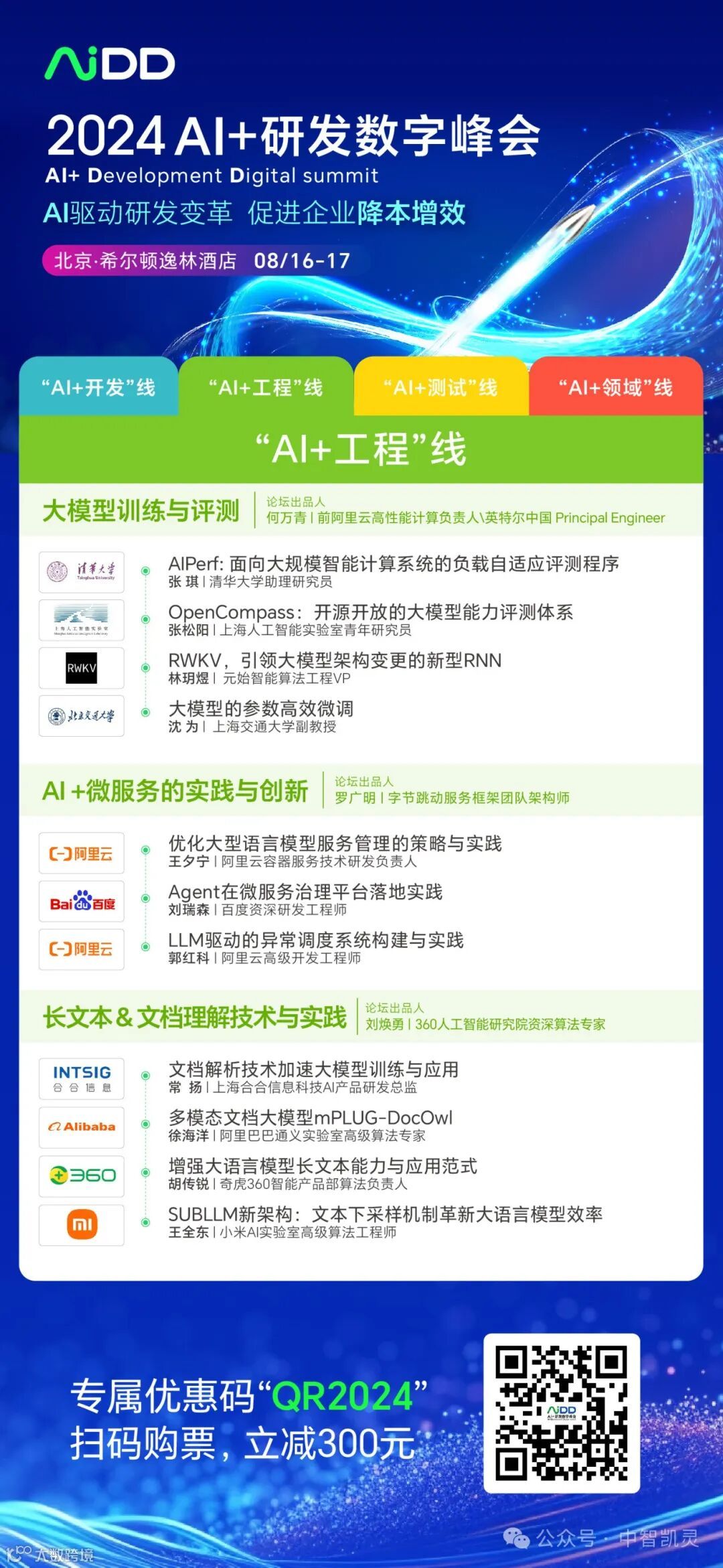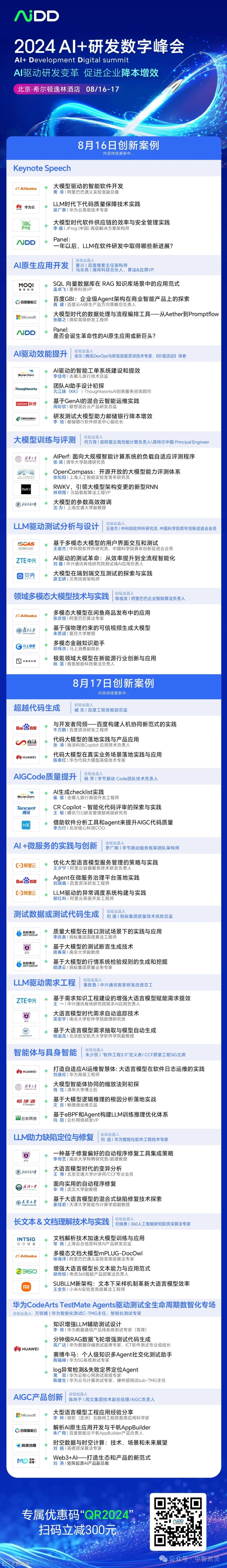 8月16-17日AiDD峰会北京站,以“AI驱动研发变革,促进企业降本增效”为主题,邀请了来自百度、阿里、腾讯、华为、360、字节跳动、蚂蚁、小米、去哪儿、中兴、JFrog等头部互联网企业,以及清华大学、北京大学等各大高校的一线从业者和技术专家带来最前沿的主题内容分享。“人工智能+”行动一触即发,我们期待在这场盛会上,与各位一起探讨“AI+” 行动的无限可能,共同促进新质生产力的发展,开创数智化时代的新篇章。