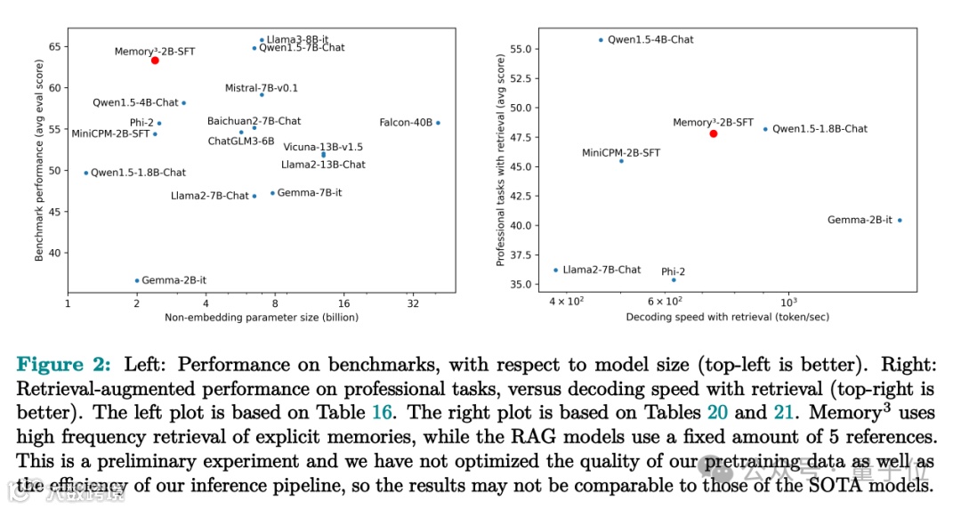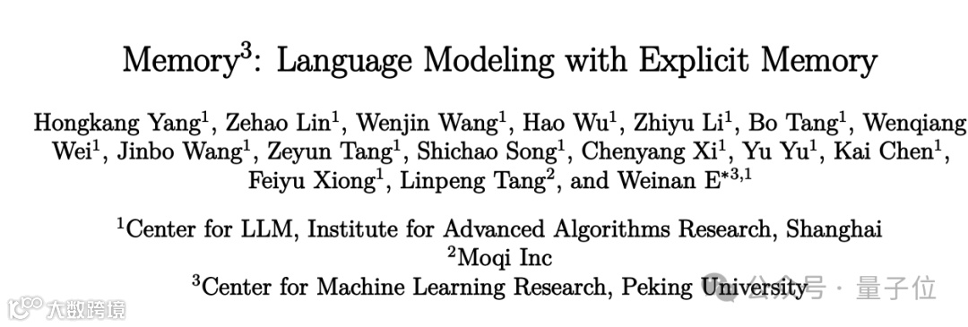 中科院院士鄂维南领衔,上海算法创新研究院等团队推出Memory3,比在参数中存储知识以及RAG成本都更低,同时保持比RAG更高的解码速度。