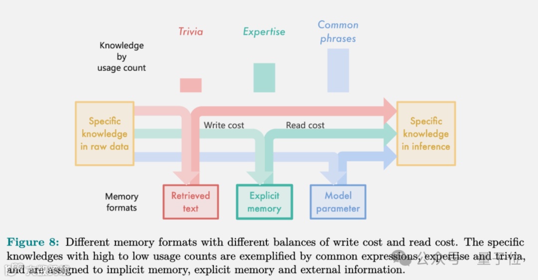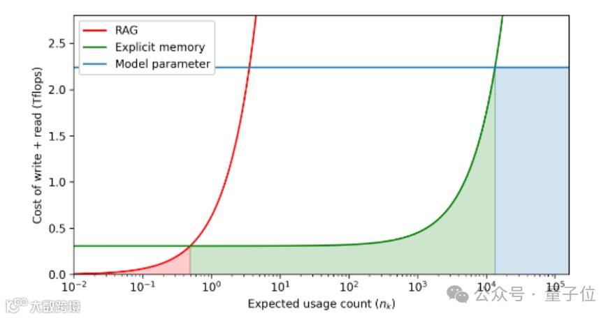 结果发现,把常用知识塞进模型参数里成本最低,但容量有限;不常用的知识直接检索效率最高,但每次读取都要重新编码,成本高;而显式记忆则是个平衡点,对于使用次数中等的大部分知识最划算。