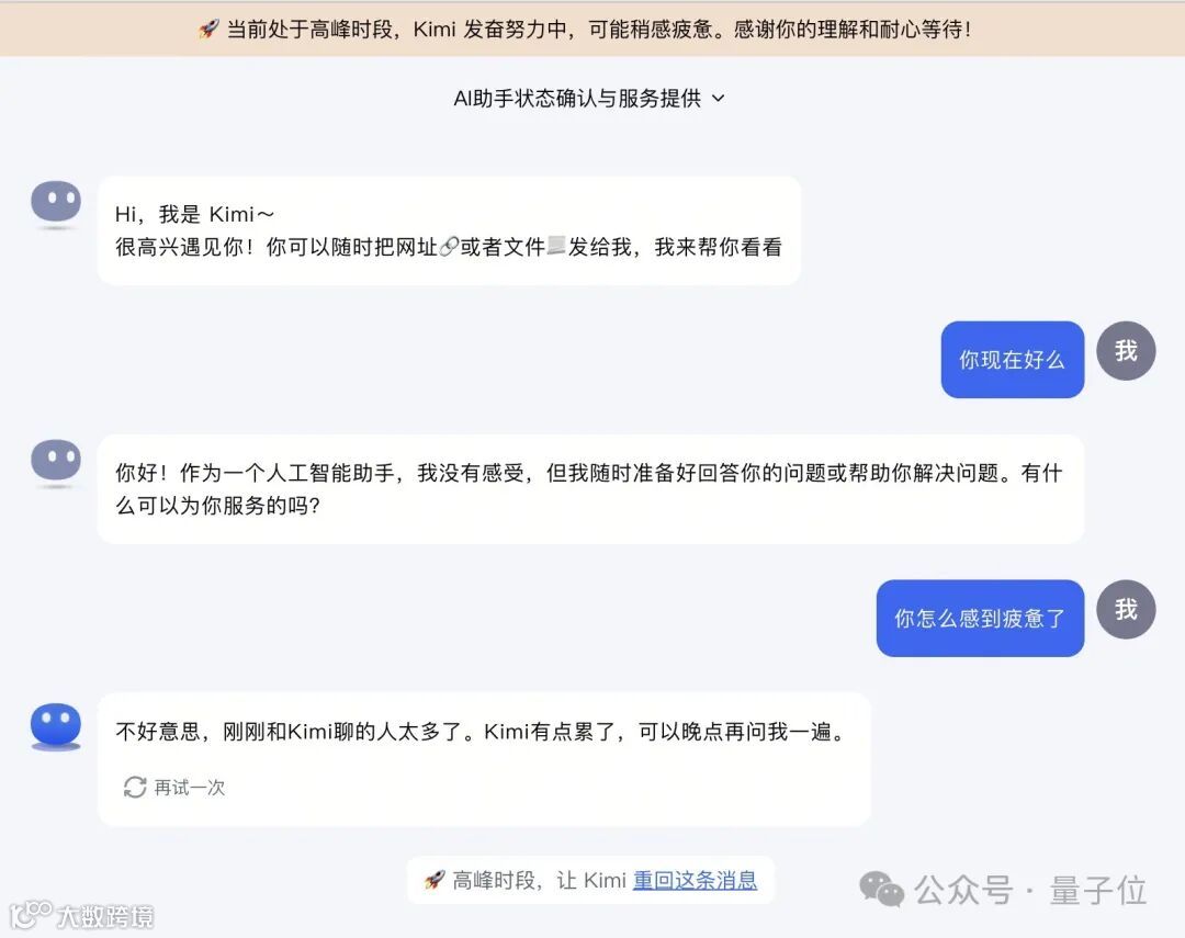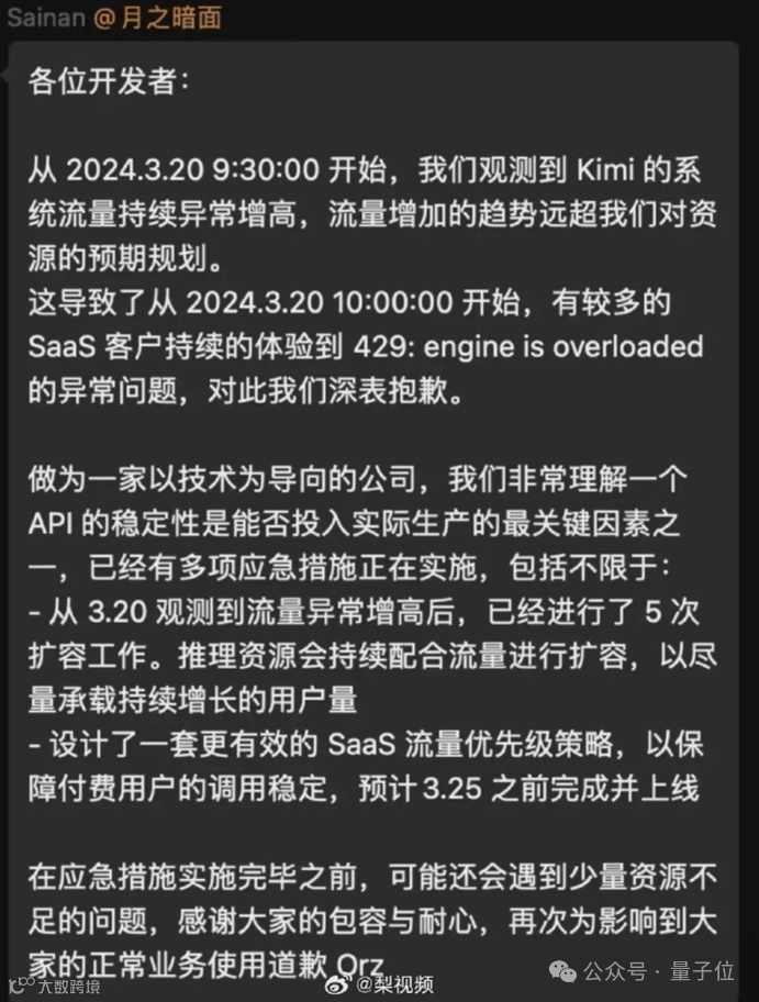 官方解释:从昨天早上我们就检测到Kimi系统的流量持续异常增高,远超我们预期的资源规划。我们已经进行了5次扩容。