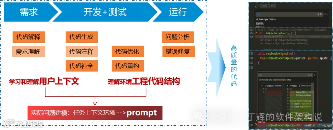 2、使用copilot,精准识别用户意图以获取光标上下文的语义特征,同时满足最小提示词的要求,通过小模型生成高准确率代码。