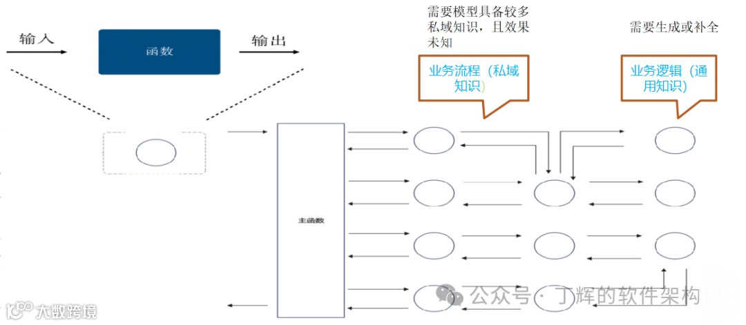 1、使用经过私域知识剥离(分离业务流程和业务逻辑)的短提示词,生成具备通用知识的代码来承载业务逻辑,业务流程通过人工进行串接。