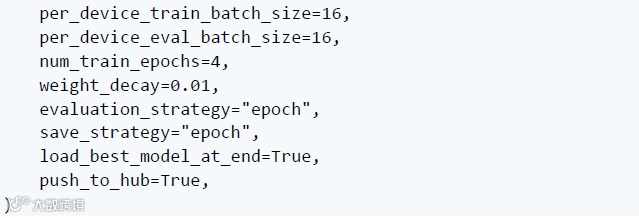 接下来,使用准确性指标和特定的 TrainingArguments 对其进行微调:
