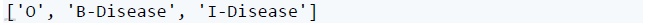 在这里,“O”标记不属于疾病实体的单词,“B-疾病”标记开始,“I-疾病”延续实体单词。