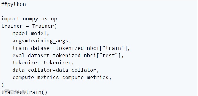 现在,您已使用自定义训练参数和指标在 NCBI 疾病数据集上成功微调了预训练模型。