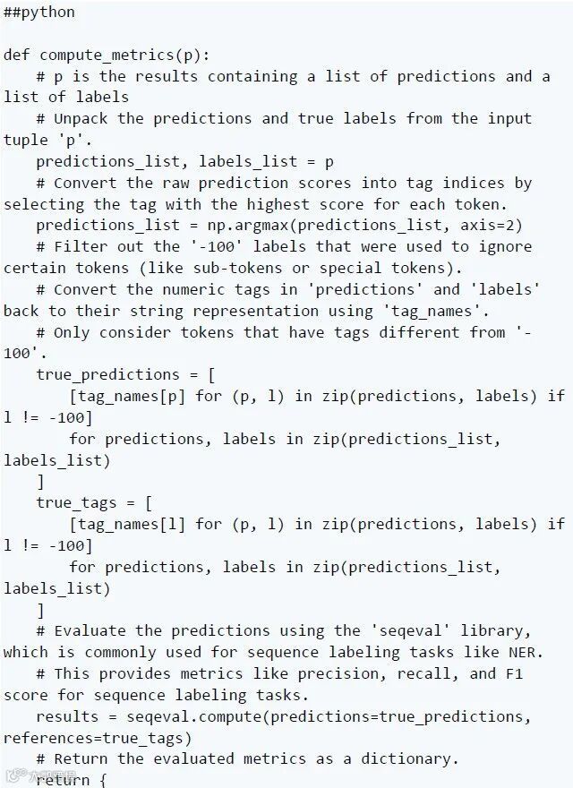 由于 Trainer 在训练过程中不会自动评估模型性能,我们需要给它传递一个函数来计算和显示指标,而Hugging Face评估库可以提供帮助,它只是提供了准确性函数,你可以用 evaluate.load() 加载。