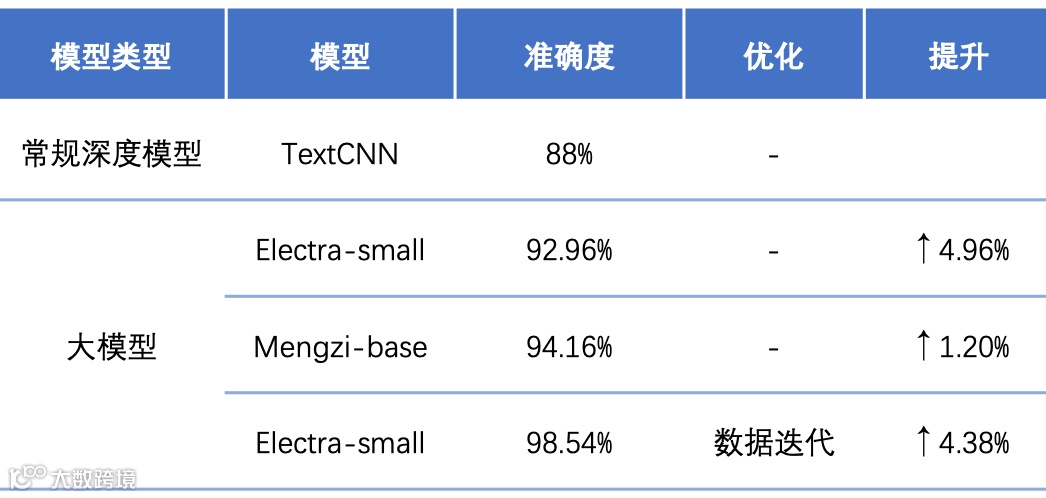 • 问答:同花顺问答业务主要是同花顺问财, 用户每日问句数量大约为1000万条,累计不同问句约5亿条,需求量比较高。问财前几年用的深度学习模型TextCNN做通用语义识别准确率为88%,在应用了预训练大模型后,准确率显著提升至92.96%。再加上更多的数据进行迭代,可进一步提升效果。