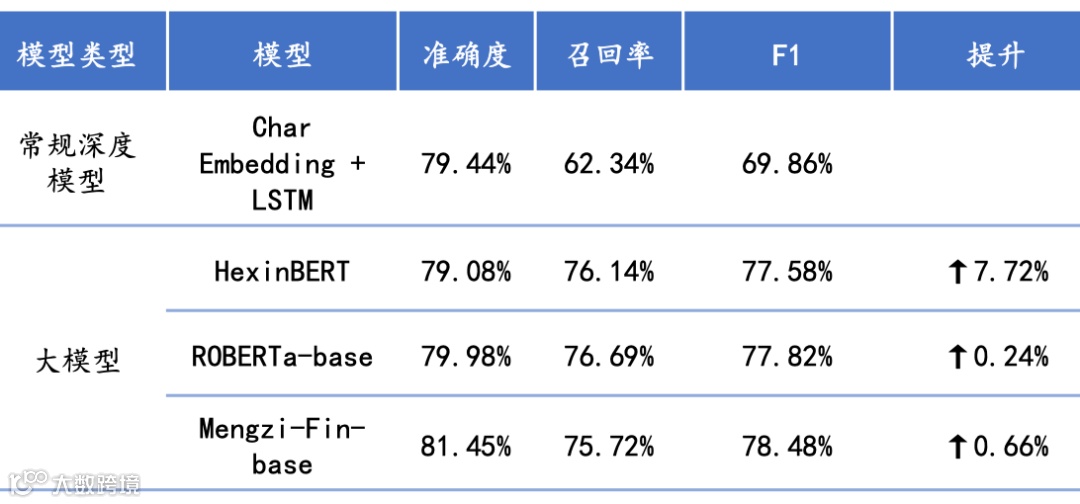 • 舆情监控:“同花顺企洞察”,可以自动识别公司正负面新闻。大模型让机构名称识别准确度提升17.25%,舆情风险识别准确度提升同样提升17.25%,并且使用的是参数较少的tinybert,后续还有优 化空间。