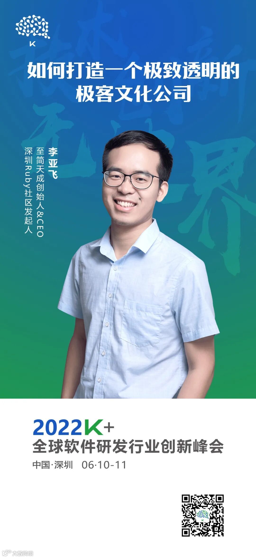 李亚飞——深圳至简天成科技有限公司创始人&CEO。12年全栈工程师,前深信服资深架构师,连续创业者,深圳Ruby社区发起人