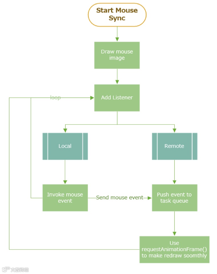 当这个问题解决完之后,那就意味着一个大的问题解决了,大多数市面上比如说有一些类似的产品就做到那个程度,但针对业务场景需求就需要有一个非常强的,能不能有一种丝滑的感觉,我们需要做到一个非常重要的能力就是鼠标的同步,鼠标同步大家可以想一下这种场景下一个巨大的挑战,什么时间发送一个鼠标状态到对端,非常多人的时候可以想到中间会遇到一个巨大的渲染的压力,刚开始实现的那个方案感觉卡卡的,大家可以感觉到移动沟通上面鼠标状态会有一些延迟。