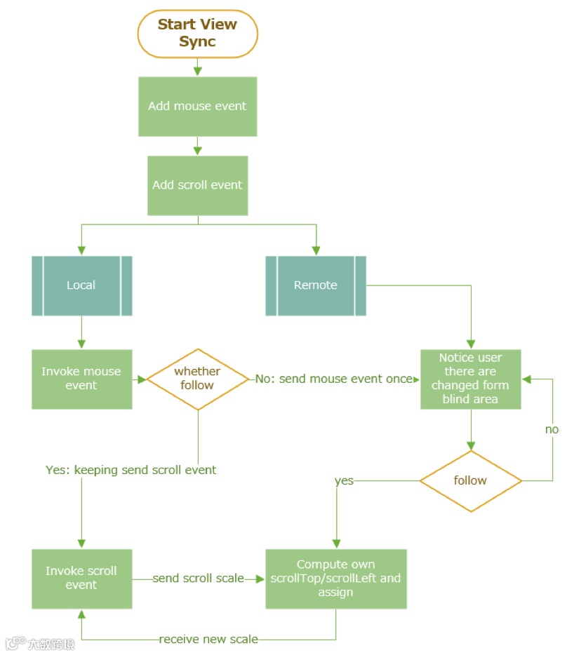 这里面最重要的是视角同步整个技术处理,第一一样的会追随鼠标状态,然后关注每个图形的位置,换算对方过来之后有没有超出区域。最重要的是拿到对方视角的位置,然后再分析有没有大于我们的区域。