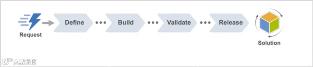 DVS,本文中简称为价值流,是一个组织为向客户提供解决方案所执行的一系列步骤。具体的步骤顺序对每个价值流来说都是独一无二的,但通常包括定义、构建、验证和逐步发布功能,如图2所示。