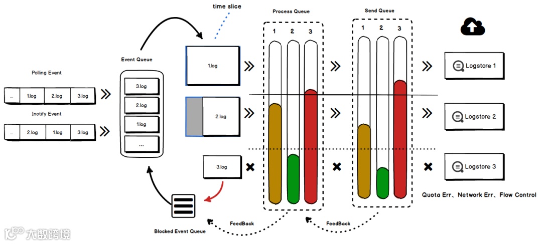 在生产环境中,一台服务存在数百个采集配置属于常态,每个配置的优先级、日志产生速度、处理方式、上传目的地址等都有可能不同,因此必须有效解决如何隔离各种自定义配置,保证采集配置QoS不因部分配置异常而受到影响的问题。iLogtail采用基于时间片的采集调度、多级高低水位反馈队列、事件非阻塞处理、流控/停采策略以及配置动态更新等多项关键技术,融合实现了兼具隔离性、公平性、可靠性、可控性、性价比五大特性的多租户隔离方案。经历了多年双11流量高峰期的考验,这套方案已经被证明相比其他开源具备较大的稳定性和性价比优势。