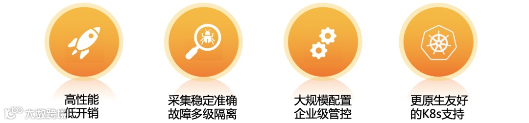 采集稳定准确,故障多级隔离:可观测性需要比被观测的系统至少可靠一个数量级。数据采集Agent的稳定性,除了保证数据本身采集的准确性外,还需要保证不能影响业务应用,否则将带来灾难性的后果。另一方面,无论怎样出现问题,都需要尽可能的隔离问题,例如一个Agent上有多个采集配置,一个配置出问题,不能影响其他配置。
