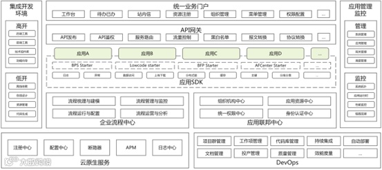 应用采用高低开融合建设,但应用资源要运行在同一个进程中;