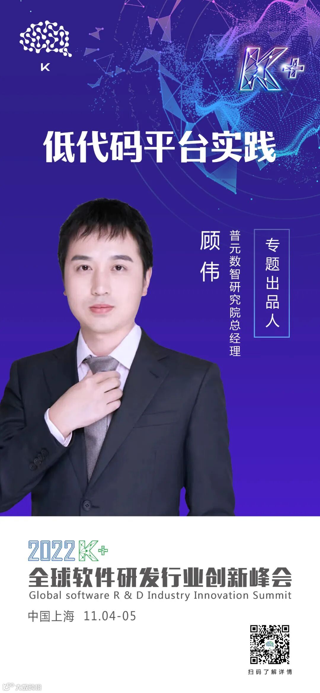 顾伟——现任普元数智研究院总经理,长期负责公司的应用和数据平台发展,在微服务、DevOps、低代码、数据治理等领域有丰富的研发与实施经验,主导了多家大型企业的云原生与低代码平台建设。