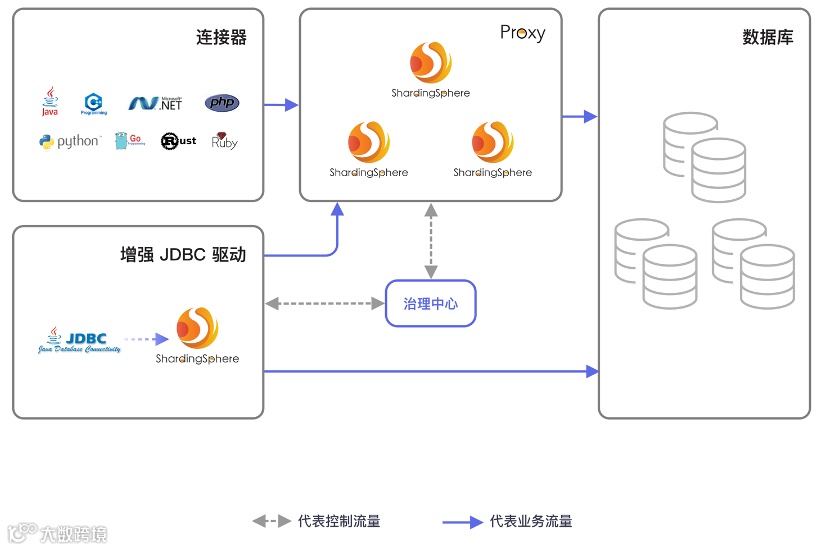 ShardingSphere-Proxy 和 ShardingSphere-JDBC 不仅可以通过混合使用的方式,来满足用户的使用友好度、跨语言适配、高性能、资源节省等各方面需求;还可以通过 Traffic Rule 让 ShardingSphere-Proxy 和 ShardingSphere-JDBC 在不同特征的 SQL 请求中相互路由,以最小化应用资源占用所带来的影响。