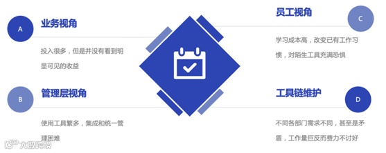 如图-1,在业务与管理层视角,很难看到DevOps带来的明显改善,而从员工与工具支持方面难以取得快速成功。这也是我见到的大多数企业的现状。