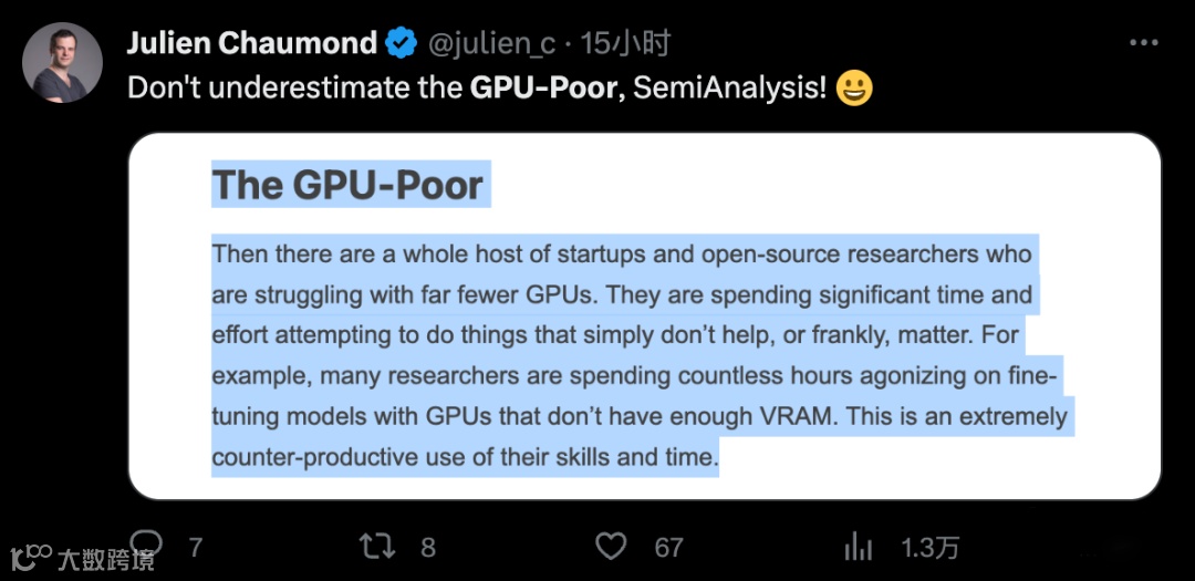 一夜醒来,大模型圈都在热议一个词——“GPU贫民”(GPU-Poor)。
