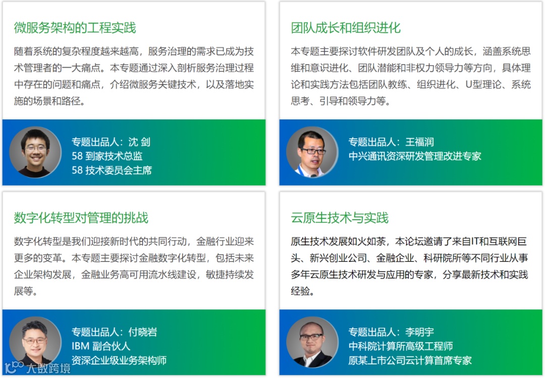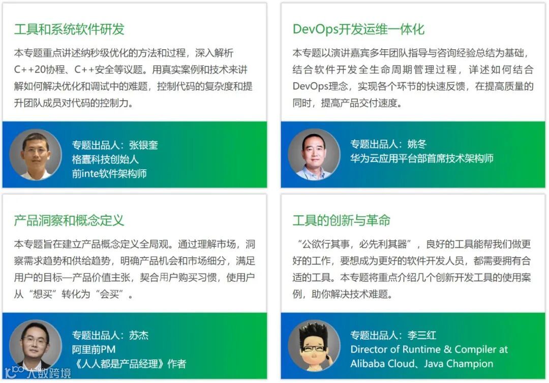 聚焦工程创新、技术创新、产品创新、管理创新、效能创新五大方向,融合数字化转型、产品创新、运营增长、云原生、DevOps创新、质量创新、微服务、高并发架构、智能金融、应用性能优化、工具的革命、团队成长与组织进化等十几大专场。