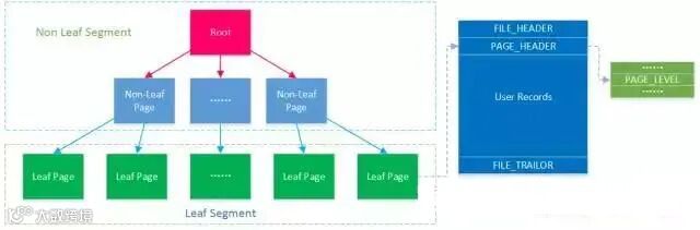 如上图所示,InnoDB是索引组织表,每个页都包含一个PAGE_LEVEL的信息(见上图右半部分),用于表示当前页所在索引中的高度。默认叶子节点的高度为0,那么Root页的PAGE_LEVEL+1就是这棵索引的高度。