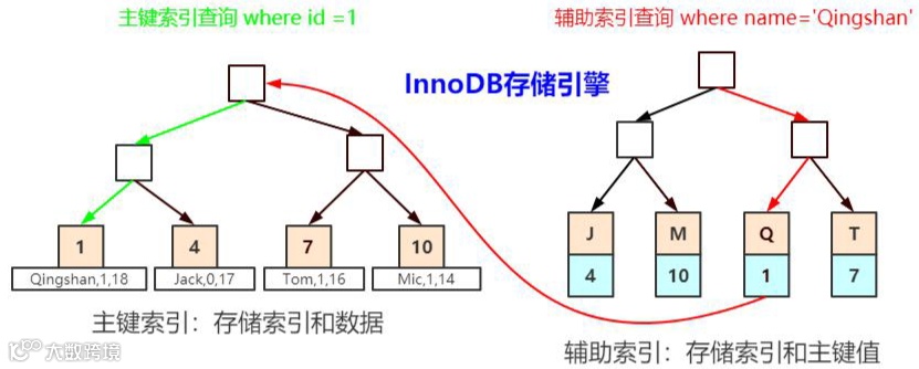 我们都知道MySQL里,索引是用B+树来实现的。B+树的叶子结点才保存具体数据(聚簇索引保存的是完整行数据,而二级辅助索引保存的是索引值+主键,非覆盖索引查询还得回表),中间结点都是用来索引叶子结点的。