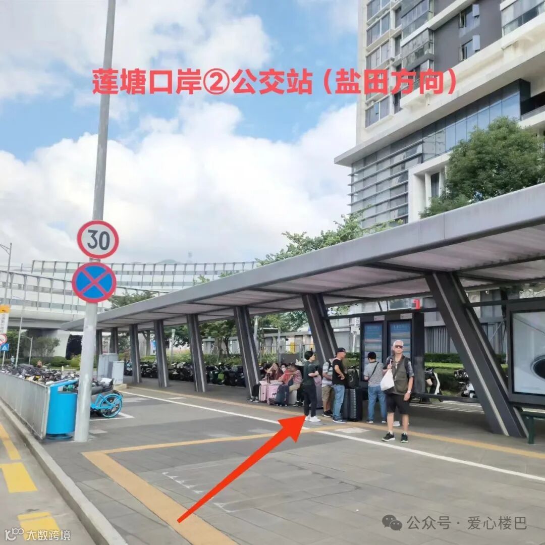 莲塘口岸②公交站上车点,位于口岸天桥下面