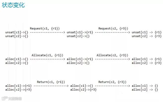 服务端给客户端c1分配了资源{r1},就是把已分配alloc中增加一个c1申请的资源集合{r1};