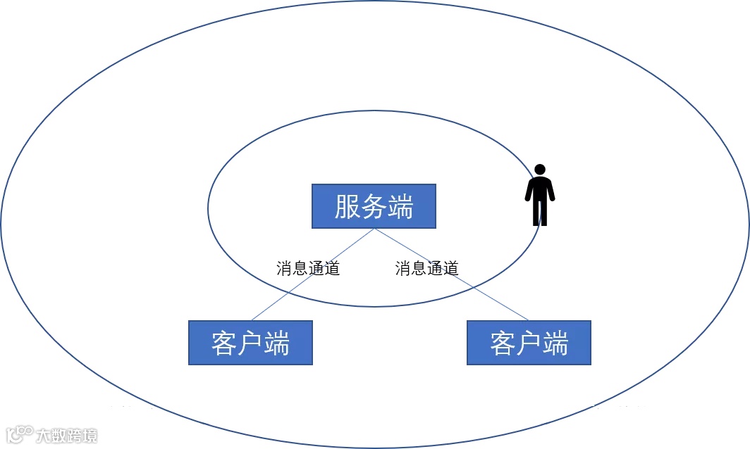 我们可以按通讯机制把系统分成了两层,内层就是服务端,外层是客户端,两者之间是消息通道。
