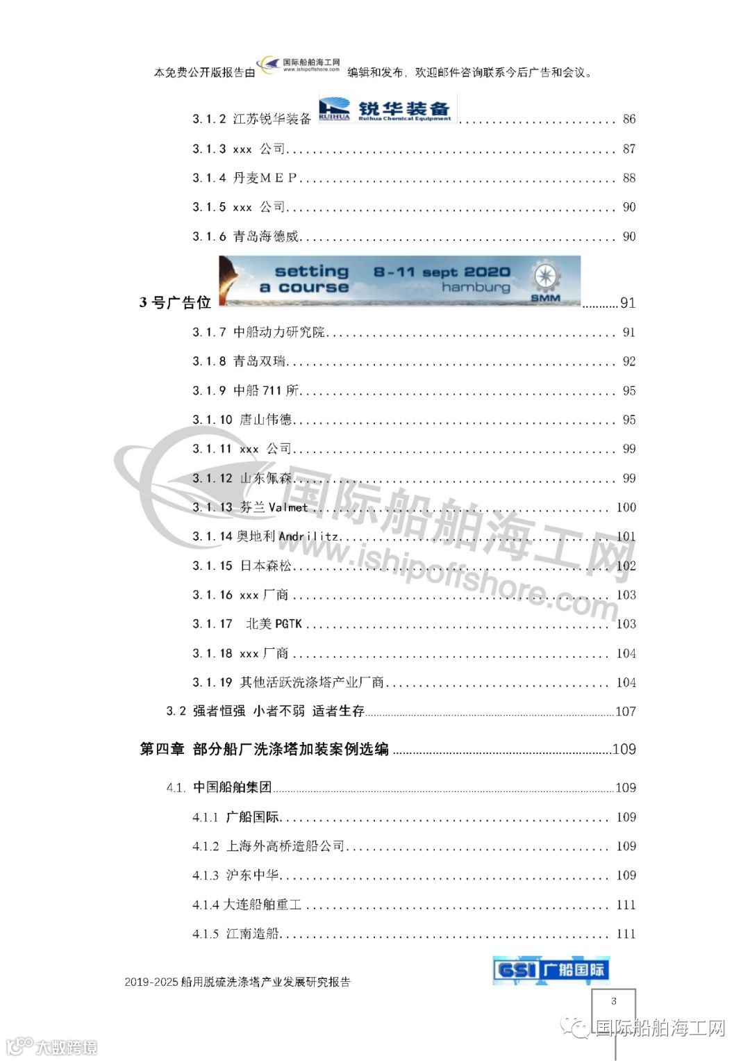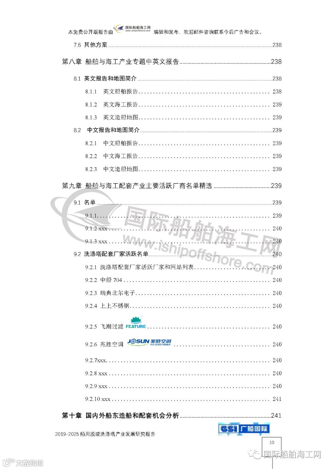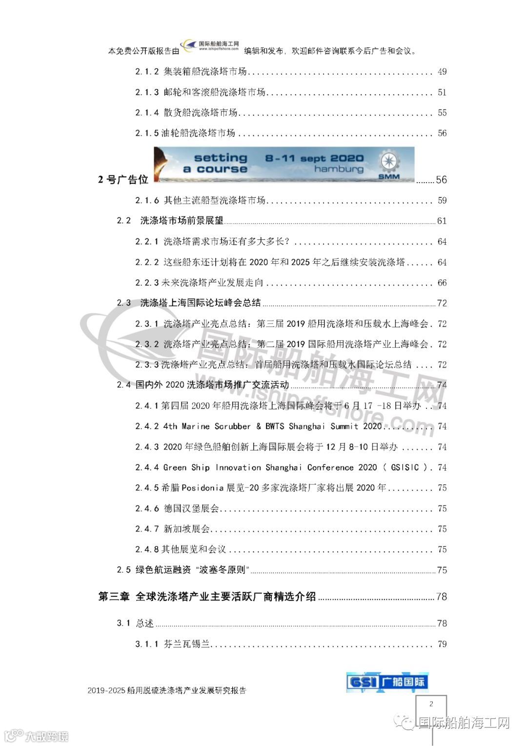 还有更多福利国内外许多行业人士,峰会举办方国际船舶海工网将于2020年3月30日免费公开发布电子版《2019-2025 船用脱硫洗涤塔产业发展研究报告》。国内外单位在了解到将于2020年3月30日免费公开发布电子版《2019-2025 船用脱硫洗涤塔产业发展研究报告》后,纷纷建议能否提供英文版提纲和提要,同时增加新的广告项目。国际船舶海工网积极回应,准备考虑增加报告的英文版提纲和提要,同时增加新的广告项目供选择参考。非常期待有预算公司提供赞助和广告,以便我们不断改进和提高报告质量,更好地为产业服务。新的广告项目机会如下:
