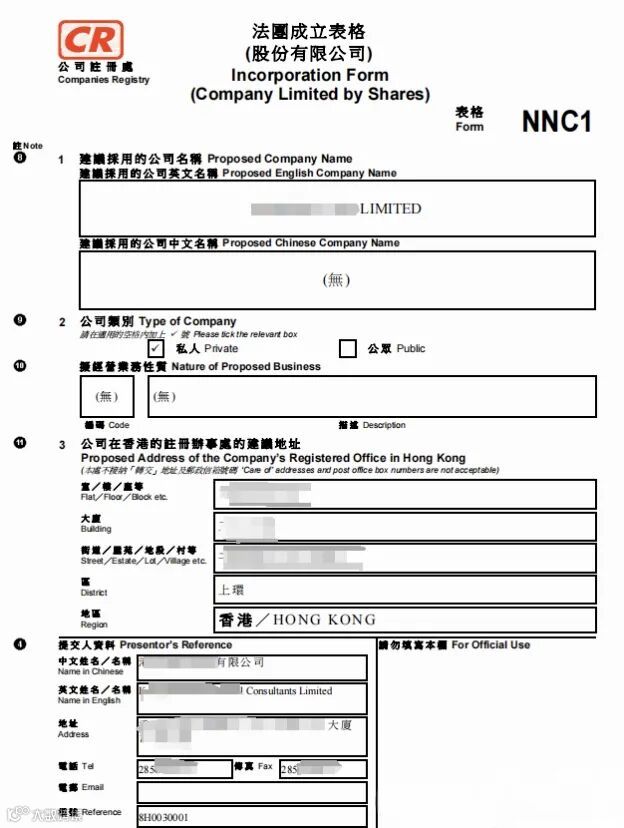 三、NNC1(Incorporation Form,法团成立表格)
