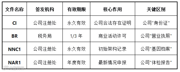 注册香港公司后,会收到几份核心文件 ——CI、BR、NNC1、NAR1,不少老板拿到后分不清用途,甚至业务办理中因为混淆这些文件而遇到麻烦?今天就拆解这 4 类文件的「作用、特点、使用场景」,帮你搞懂怎么用、怎么区分,避免踩坑。