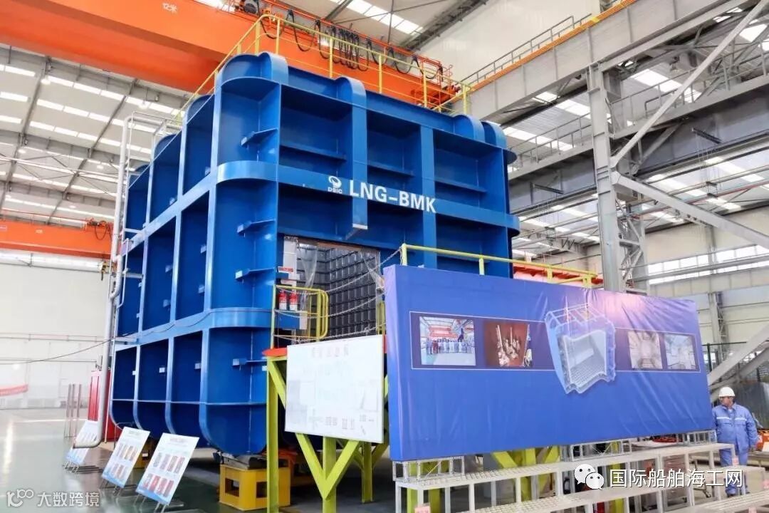 科研专项MarkⅢ型液化天然气船全封闭模拟舱建造完工暨GTT和船级社颁证仪式。法国GTT公司、英国劳氏船级社和中国船级社代表在模拟舱建造现场向大船集团代表颁发证书,标志着大船集团成功研制出全球首座封闭Mark Ⅲ型液化天然气船模拟舱,在液化天然气船设计建造领域取得了又一重要突破。也将成为继上海沪东中华造船之后中国第二家大型LNG运输船的设计建造主力。
