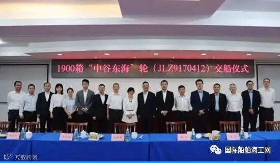 8月30日上午,南京金陵船厂有限公司(以下简称:金陵船厂)为上海中谷物流股份有限公司(以下简称:中谷物流)建造的第二艘1900箱集装箱船在仪征厂区码头正式交船。来自南京金陵船厂有限公司、工银金融租赁有限公司、浦银金融租赁股份有限公司、中国船级社江苏分社以及中谷物流的领导与嘉宾出席了交船仪式。
