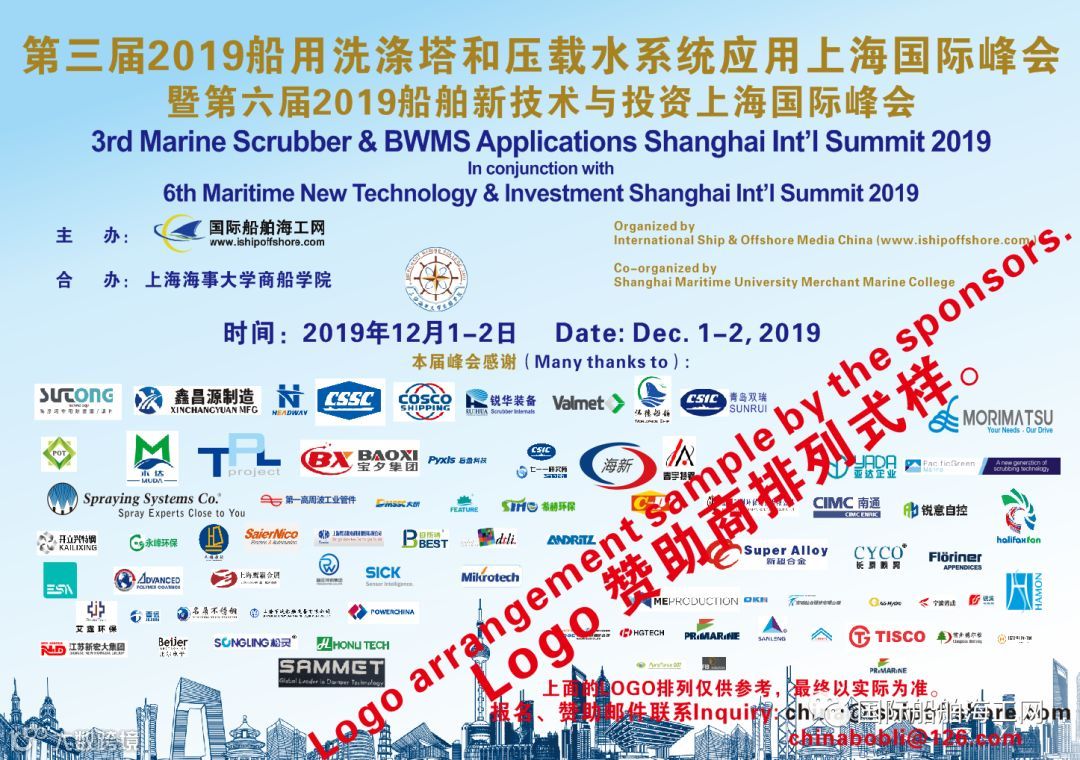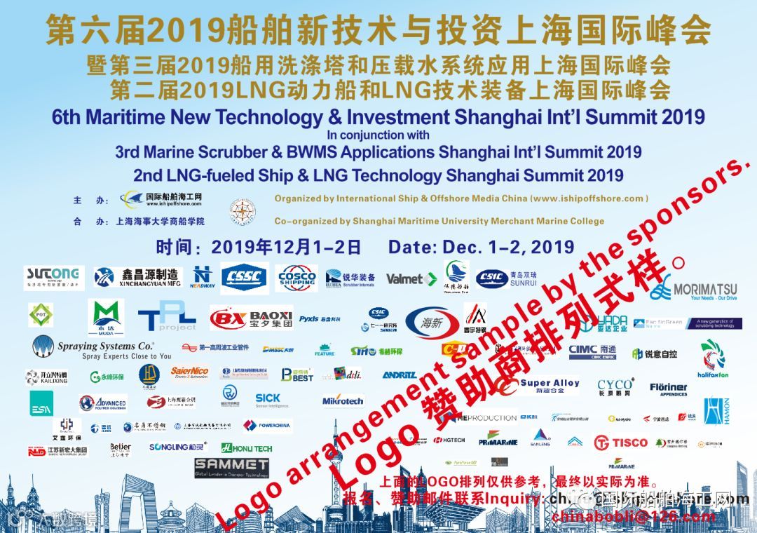 在成功举办了首届船用洗涤塔和压载水上海国际论坛及第二届国际船用脱硫洗涤塔上海国际峰会的基础上,更大规模、更高规格的“2019第三届船用洗涤塔和压载水系统上海国际峰会“和同期举办的“2019年第二届LNG动力船和LNG技术装备上海国际峰会" 、“第六届2019年船舶新技术与投资上海国际峰会”,这些峰会正在积极筹备,定于2019年12月1-2日将在上海市中心继续举办 。预计将有超过300多位来自来自中国、英国、美国、加拿大、德国、丹麦、挪威、瑞典、日本、法国、荷兰、芬兰、新加坡、马来西亚、韩国等国的船东、船厂、洗涤塔厂商、压载水厂商、配套厂家、设计和投资单位等报名参加,将汇聚上海,在12月3-6日的上海国际海事展前2天,交流、探讨和分享全球海事新规下船舶脱硫洗涤塔、LNG动力船、低硫油、LNG技术和压载水系统等的机会、挑战、合作等。