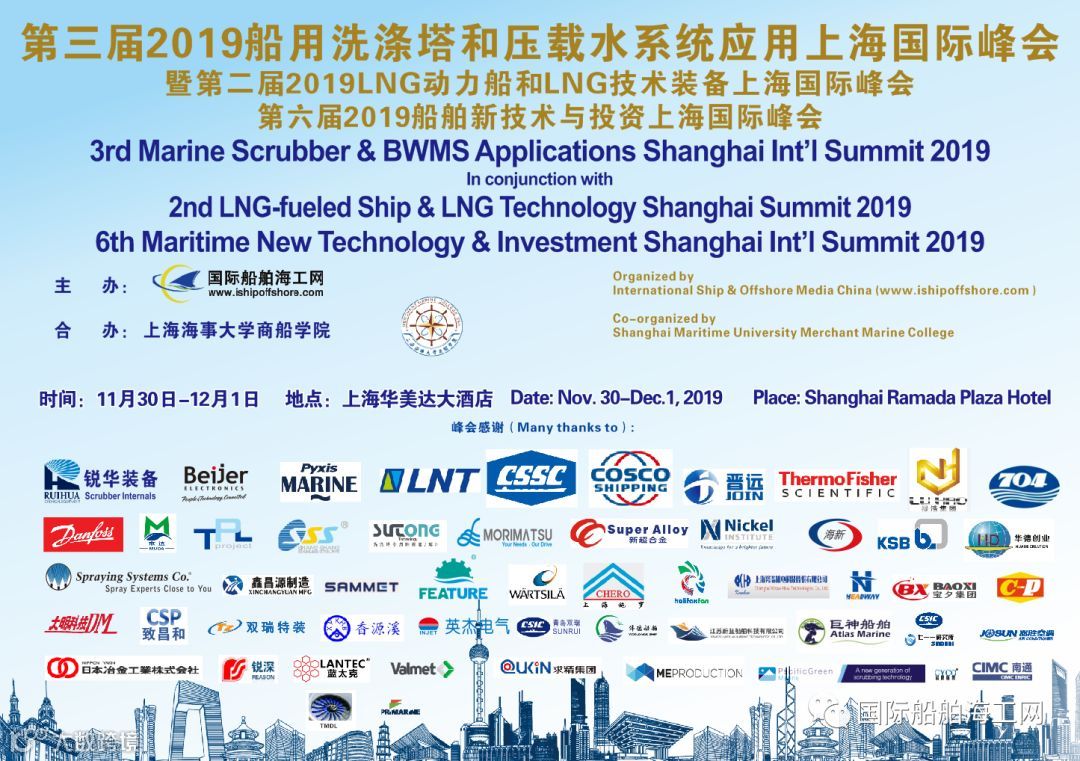 随着全球产业新技术和国际经济贸易新发展,新的业态、新的思维、新的应用正对航运、造船、海事、配套和服务等领域发起新的冲击、机会和挑战。为响应国内外众多船东、船管、船厂、供应商、投资机构、制造厂、配套厂、设计公司、服务公司等单位的交流、探讨和分享要求,“2019年第二届LNG动力船和LNG技术装备上海国际峰会" 暨“第六届2019船舶新技术与投资上海国际峰会” 和“第三届2019国际船用洗涤塔和压载水系统产业上海峰会‘’将于2019年11月30日-12月1日在上海市华美达大酒店举办。届时将有超过300多位来自中国、英国、美国、加拿大、德国、丹麦、挪威、瑞典、日本、法国、荷兰、比利时、芬兰、新加坡、马来西亚、韩国等国的船东、船厂、洗涤塔厂商、压载水厂商、配套厂家、设计和投资单位等参加,汇聚上海,在12月3-6日的上海国际海事展前3天,交流、探讨和分享低硫油供应切换压载水处理系统、船舶洗涤塔、LNG装备、智能装备和其他新技术产品应用的市场机会现状和趋势等。咨询邮件:chinabobli@126.com 或china@ishipoffshore.com