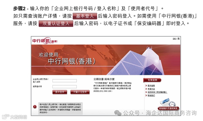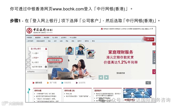 预约开户:通过中银香港官网进行在线预约,或直接委托秘书公司代服务;