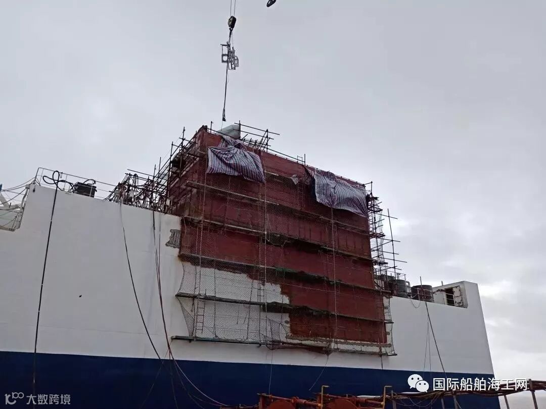 这是舟山中远海运重工首次承修汽车滚装船型脱硫洗涤塔系统改装项目。